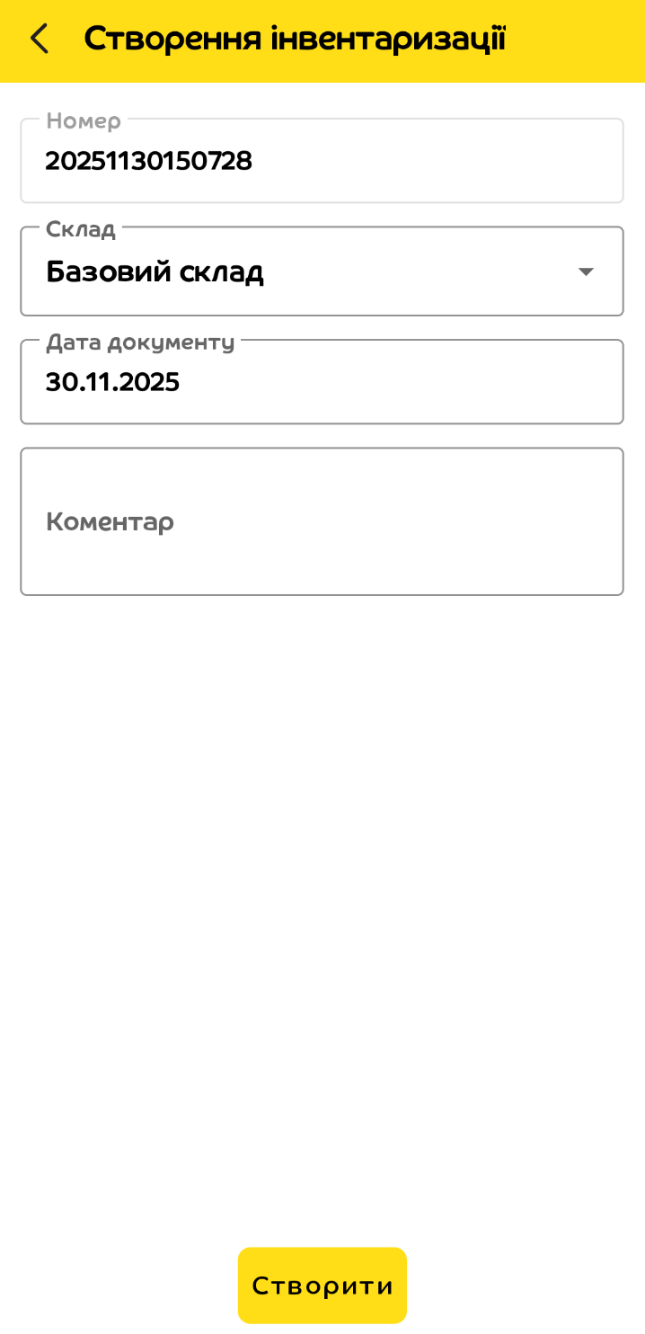 На сторінці "Інвентаризації" треба натиснути на меню у правому-верхньому куту