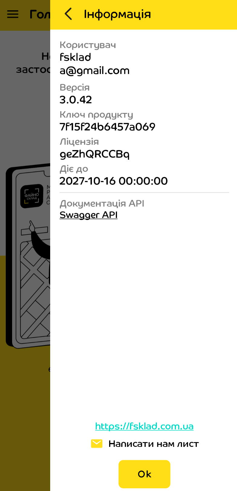 Ліцензію можно подивитись після встановлення додатку на сторінці Інформація