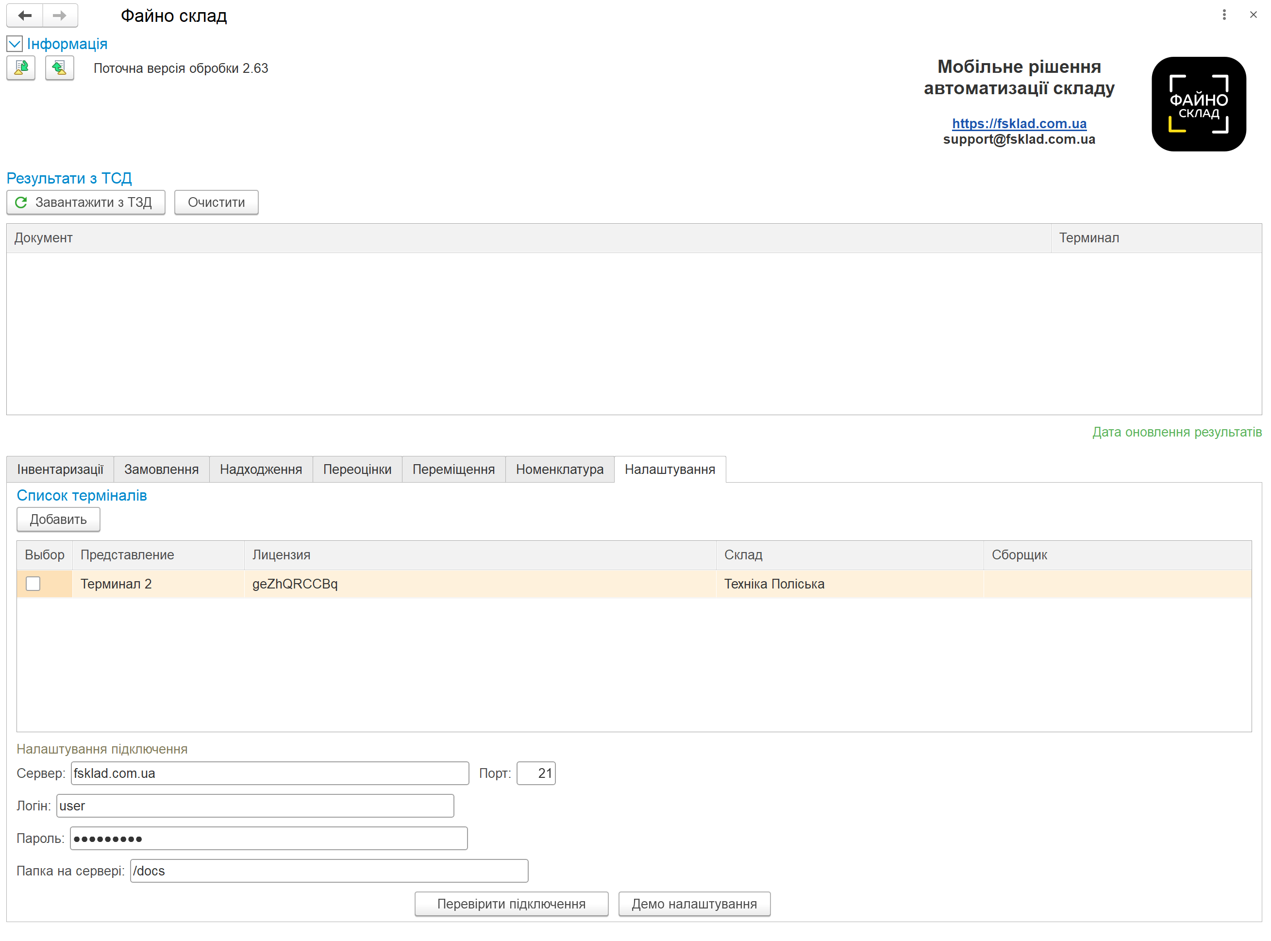 Після запуску обробки переходимо на вкладку Налаштування і заповнюємо дані для підключення.